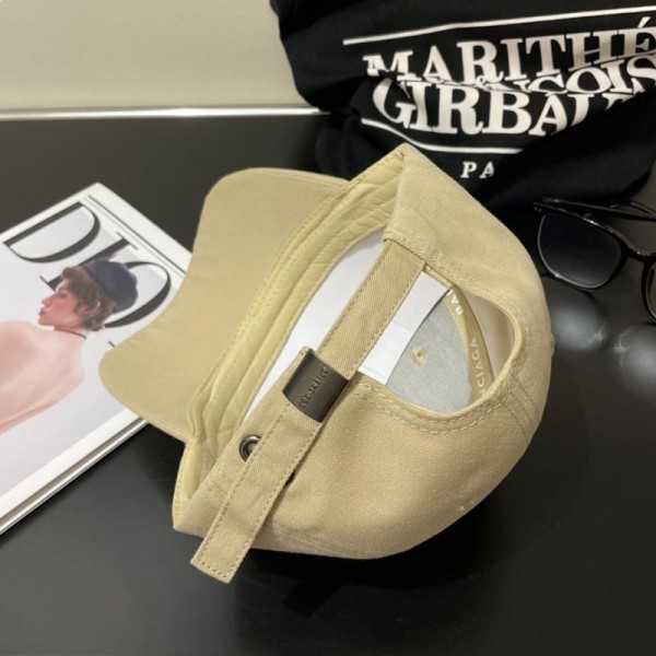 Baseballkappe mit Doppellogo von Balenciaga in Beige – Beigefarbene Baseballkappe von Balenciaga. – Baumwolldrillich. – Klassische Baseballkappenform. – Balenciaga-Logo auf der Vorderseite. – Auf dem Schirm aufgesticktes Balenciaga-Logo. – Oben aufgestickte Belüftungsösen. – Verstellbare Klettlasche auf der Rückseite.