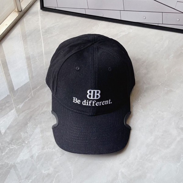 Balenciaga BB Be Different Embroidered Cap Cotton In Black-Black Balenciaga BB Logo Baseball Cap.-Cotton.-Be Different and BB logo embroidered at front.-Ventilation eyelets embroidered on top.-Notches on the visor.-Adjustable Velcro-fastening strap at back.